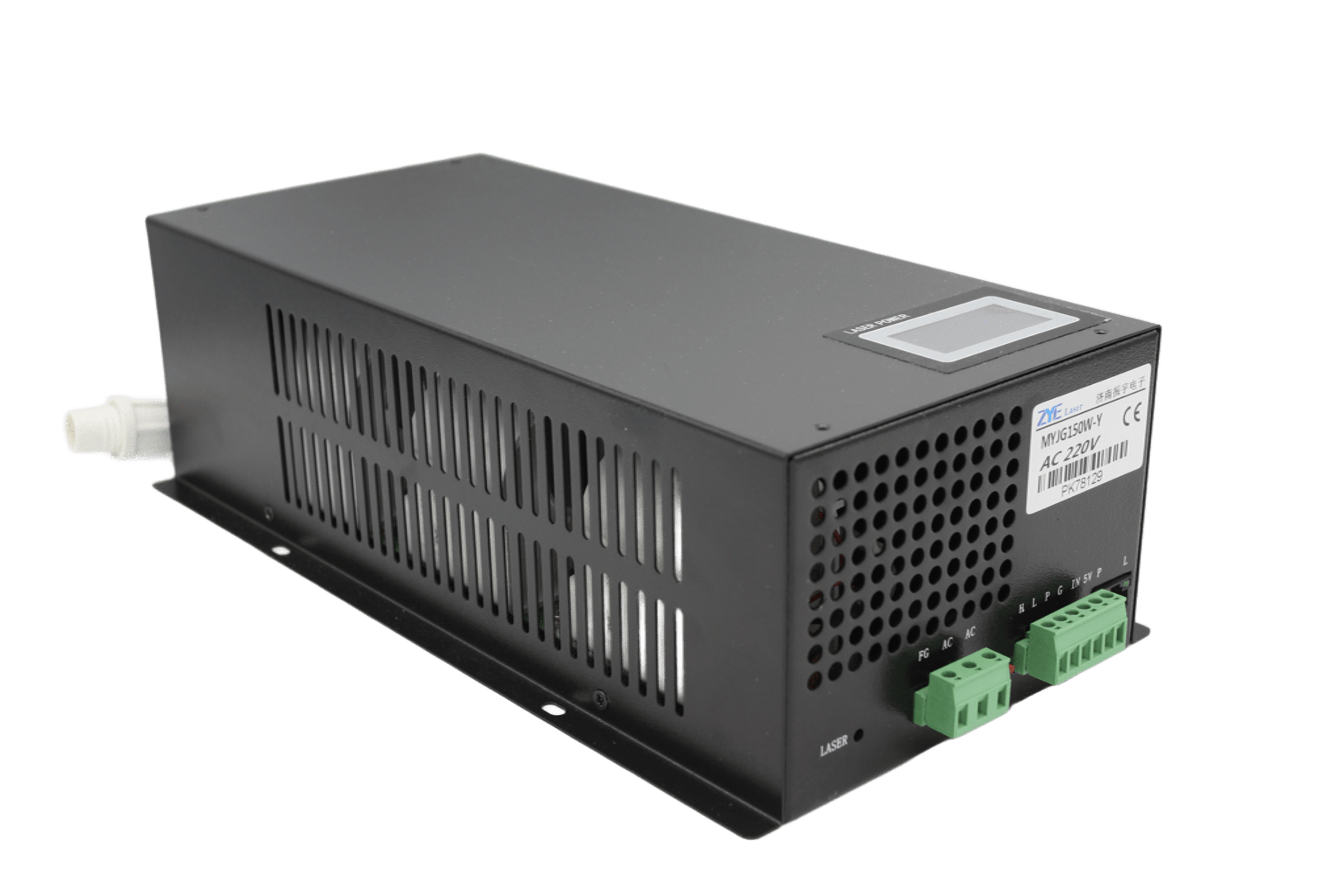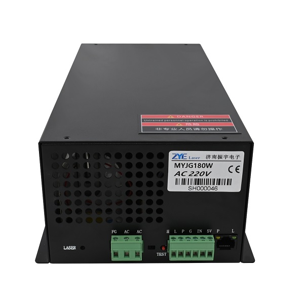 MYJG-180W CO2 laser power supply is a high-efficiency, high-frequency, high-speed power supply for carbon dioxide lasers, jointly developed by our company and authoritative carbon dioxide laser manufacturers. It is compact, lightweight, and easy to operate, with good matching performance with the laser. It can be directly connected to the laser, eliminating bulky and heat-generating ballast resistors. This power supply enables easy ignition of the carbon dioxide laser, fully utilizes the performance of the carbon dioxide laser, improves conversion efficiency, and extends the lifespan of the laser.