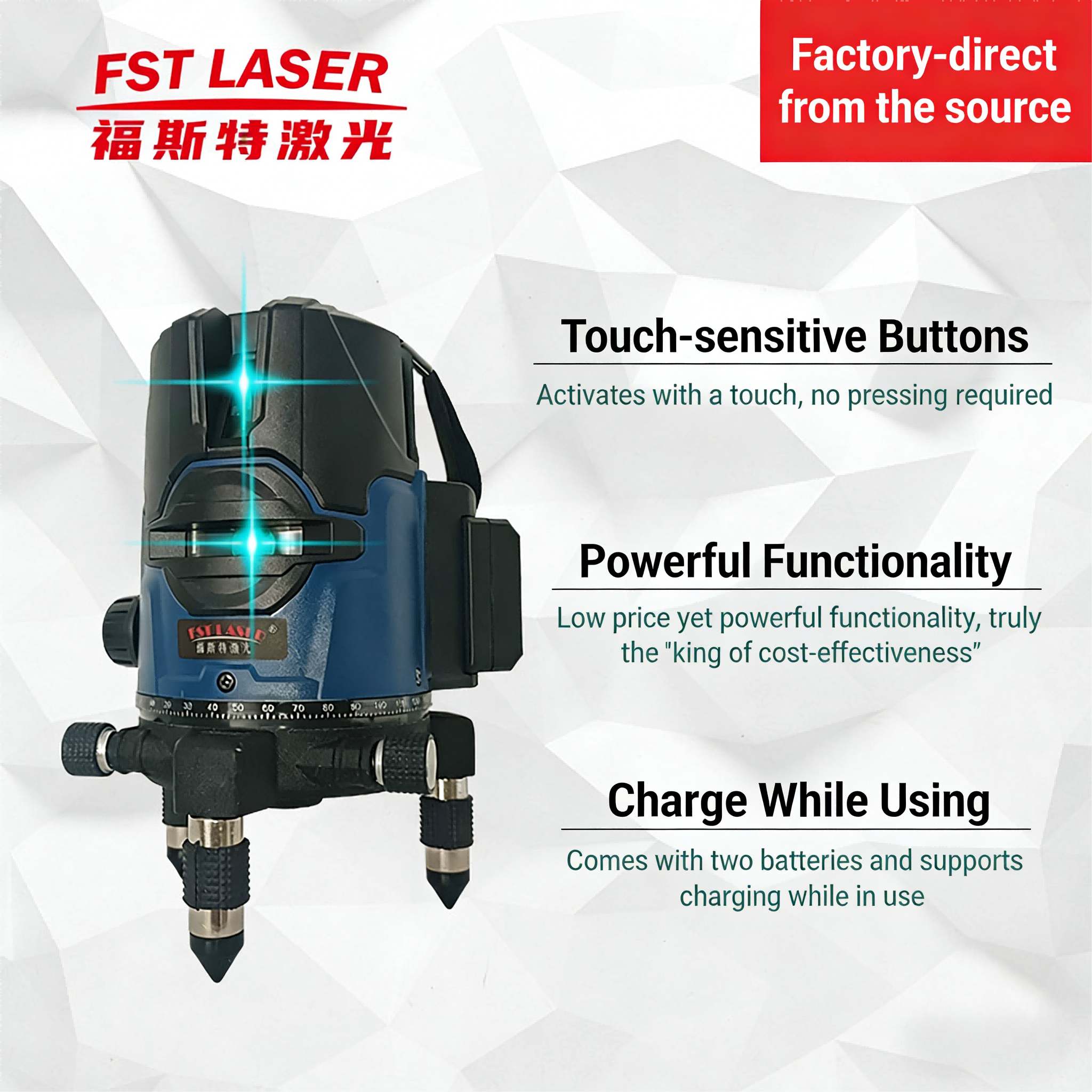 Introducing the 5 Line Blue Light Anping Floor & Wall Meter – your ultimate precision partner for flawless alignment and layout tasks. Engineered for professionals and DIY enthusiasts who demand accuracy and efficiency, this advanced laser level projector revolutionizes the way you approach horizontal and vertical alignment on both floors and walls. It emits five highly visible, bright blue laser lines—one 360° horizontal line, two 180° vertical front lines, and two additional downward vertical lines at 45° angles. This powerful configuration creates a perfect, comprehensive crosshair grid, enabling you to simultaneously visualize level, plumb, square, and 90° layout points with unprecedented ease. The superior blue laser technology ensures outstanding visibility and a longer working range even in brighter indoor conditions, significantly enhancing productivity on any job site. Housed in a robust and compact design, the meter features a magnetic pivoting base for versatile mounting…