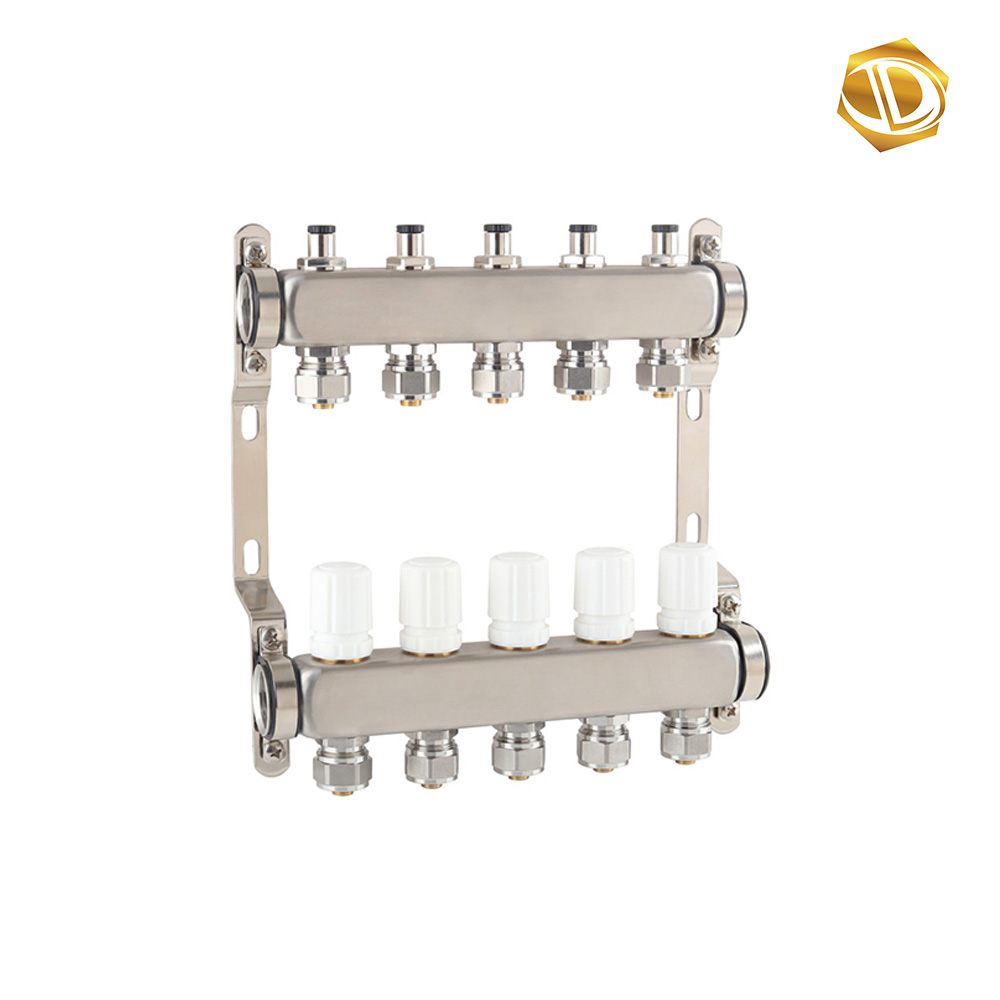 Built to withstand temperatures up to 100°C and nominal pressures of ≤10 bar, the SL1024 handles both cold and hot water systems with ease. It features 3/4" × Φ16 / 3/4" × Φ20 branch connections and 1" / 1-1/4" / 1-1/2" main pipe ports, ensuring seamless compatibility with standard Stainless Steel Pipe Fittings and Copper Valve Fittings. The 50 mm branch spacing ensures organized installation, while the flexible 2–13 route configuration adapts to projects of any scale, from small homes to large commercial buildings.