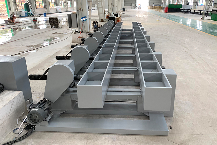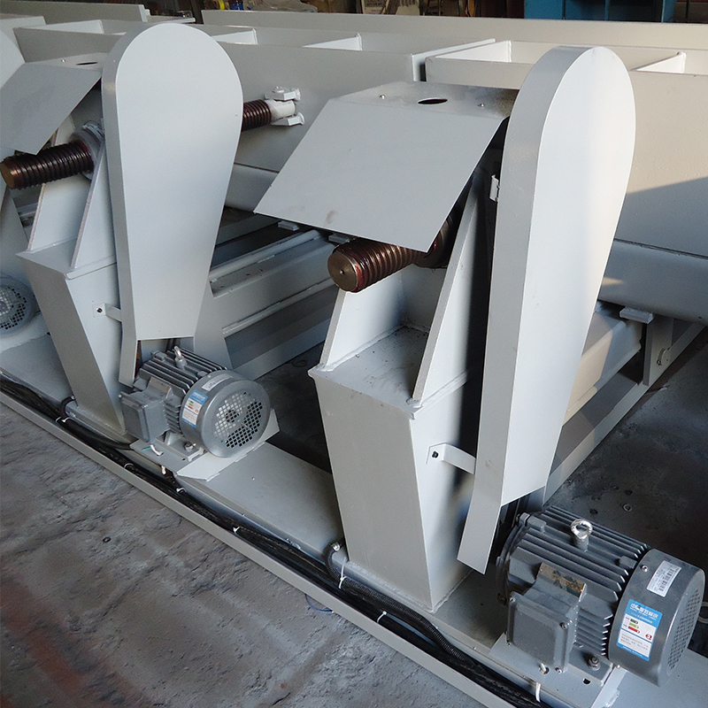 processing of lamp posts. The equipment is driven by 14 sets of worm gears to operate the jointing molds,