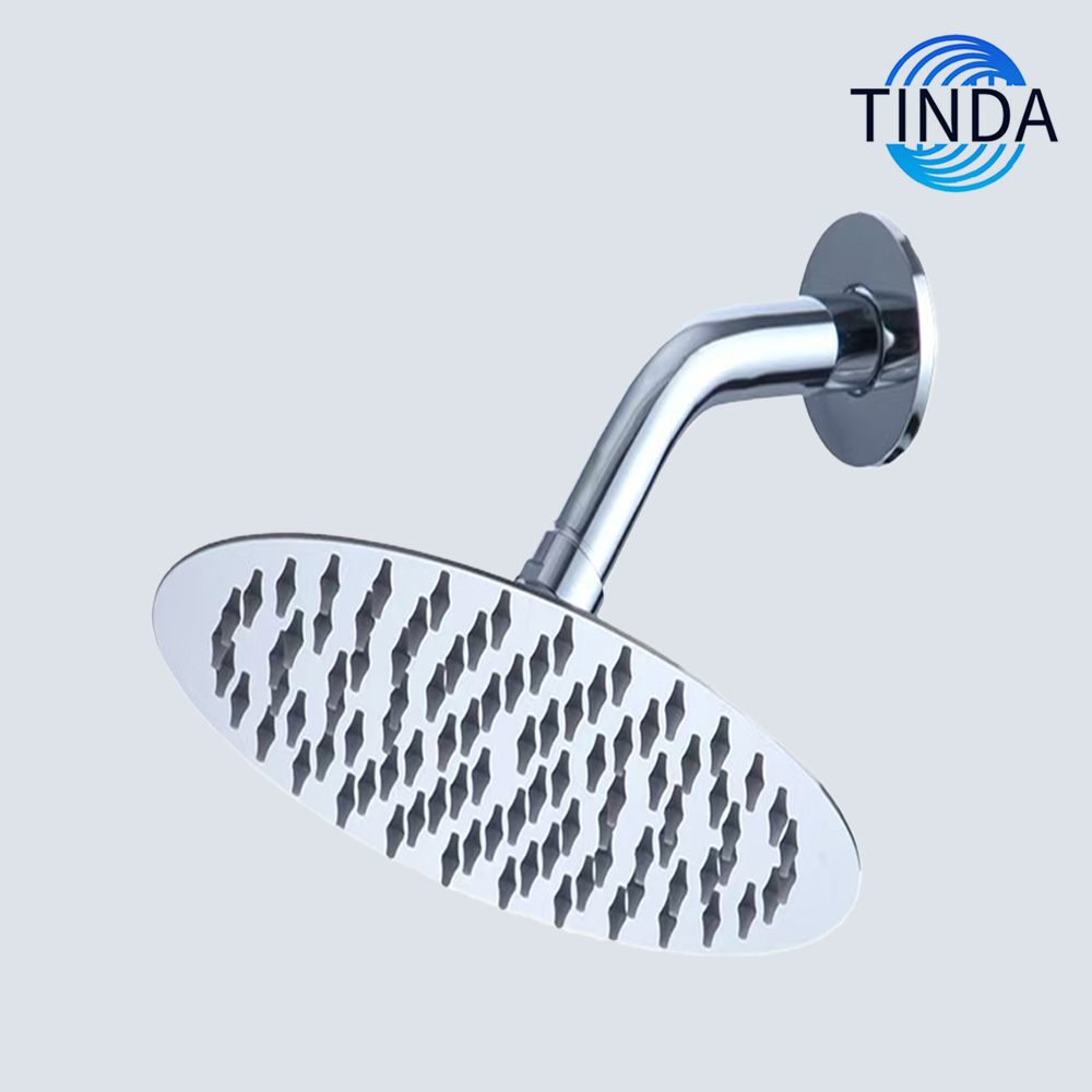 In terms of materials, the main body is made of high-quality metal and is polished to present a shiny finish. It not only has excellent texture but also has good corrosion resistance, maintaining its original appearance even after long-term use. The curved metal water pipe has a smooth and sturdy design, which can stably support the top spray and ensure that it provides a comfortable shower experience at the appropriate height.
