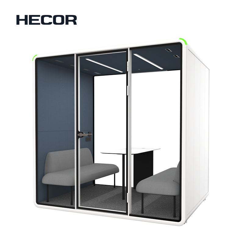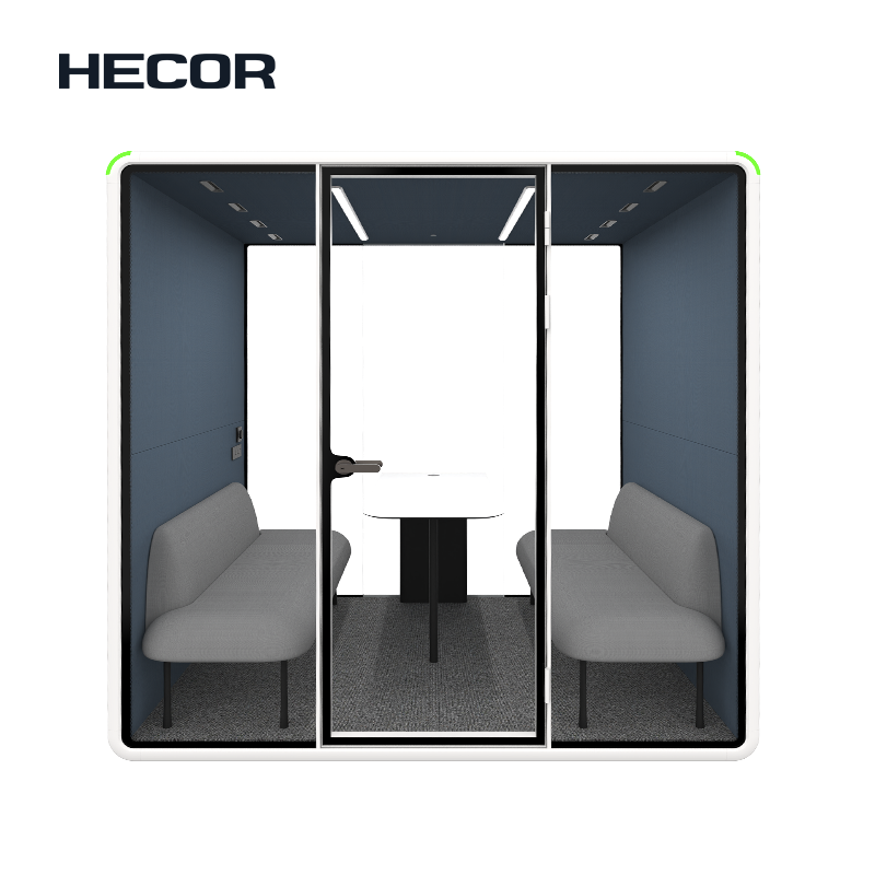 Introducing the Focus Room Booth for Up to Four, a versatile sanctuary designed to empower both deep individual work and collaborative sessions for small teams. This intelligently crafted space redefines the modern concept of a 4 person booth by offering unparalleled adaptability; it is the ideal environment for a single person to achieve complete concentration, or for a full team of four to engage in productive discussions. This makes the 4 person pod an incredibly efficient and flexible asset for any office layout.