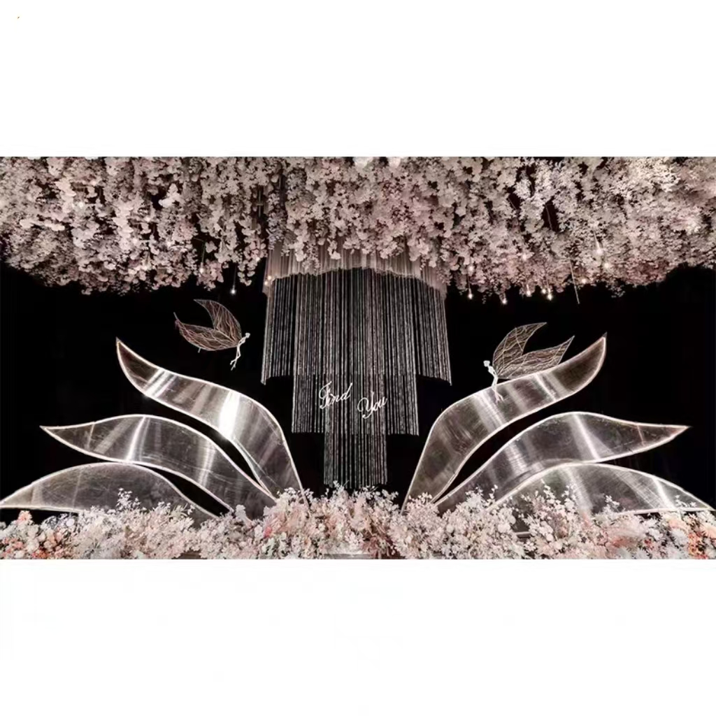 4.Product Usage:It belongs to the wedding stage props and is usually used as a backdrop. Only at weddings can you see these wedding supplies.Widely used in wedding celebrations,can be used as stage decoration and photography props;usually appears in wedding banquet halls to serve as stage backgrounds and is combined with crystals or floral arrangements,being an indispensable item for creating a unique theme banquet hall.It belongs to the stage props in the "Luxurious Hall" section.
