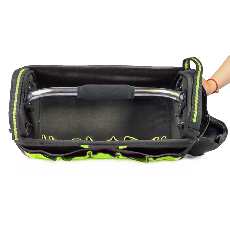 The high power cover detailing handle foldable tool bag is made of 600D/1680D polyester, waterproof and wear-resisting.The whole stitching lines are fluent and excellent.