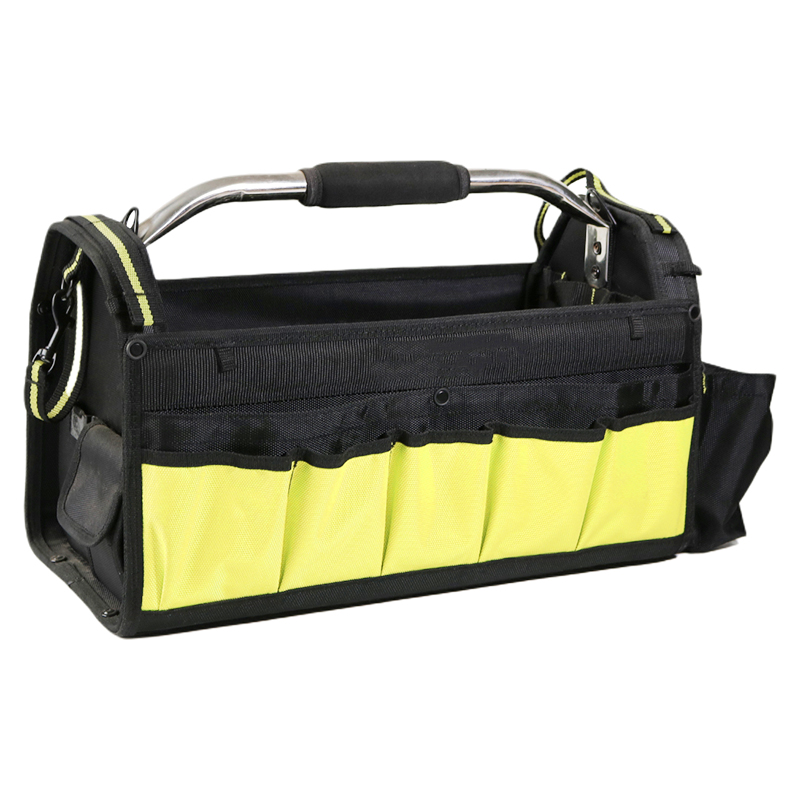 The open top is designed to help you easily take tools at work, its interior space is large enough, can hold a lot of big size tools. Both inside and outside are small opening pockets, help to store tools of small sizes.The thickening handle can lighten your pressure on hand when carrying this bag. At the bottom of the bag are five foot pads,help to prevent the bottom fabric from getting frayed when the bag is on the ground, prolong the use life of the bag.The Open Top Tool Bag with a Tool Vest and Waist Tool Holder is a convenient option for the DIY enthusiast who needs to carry their tools around on the go.
