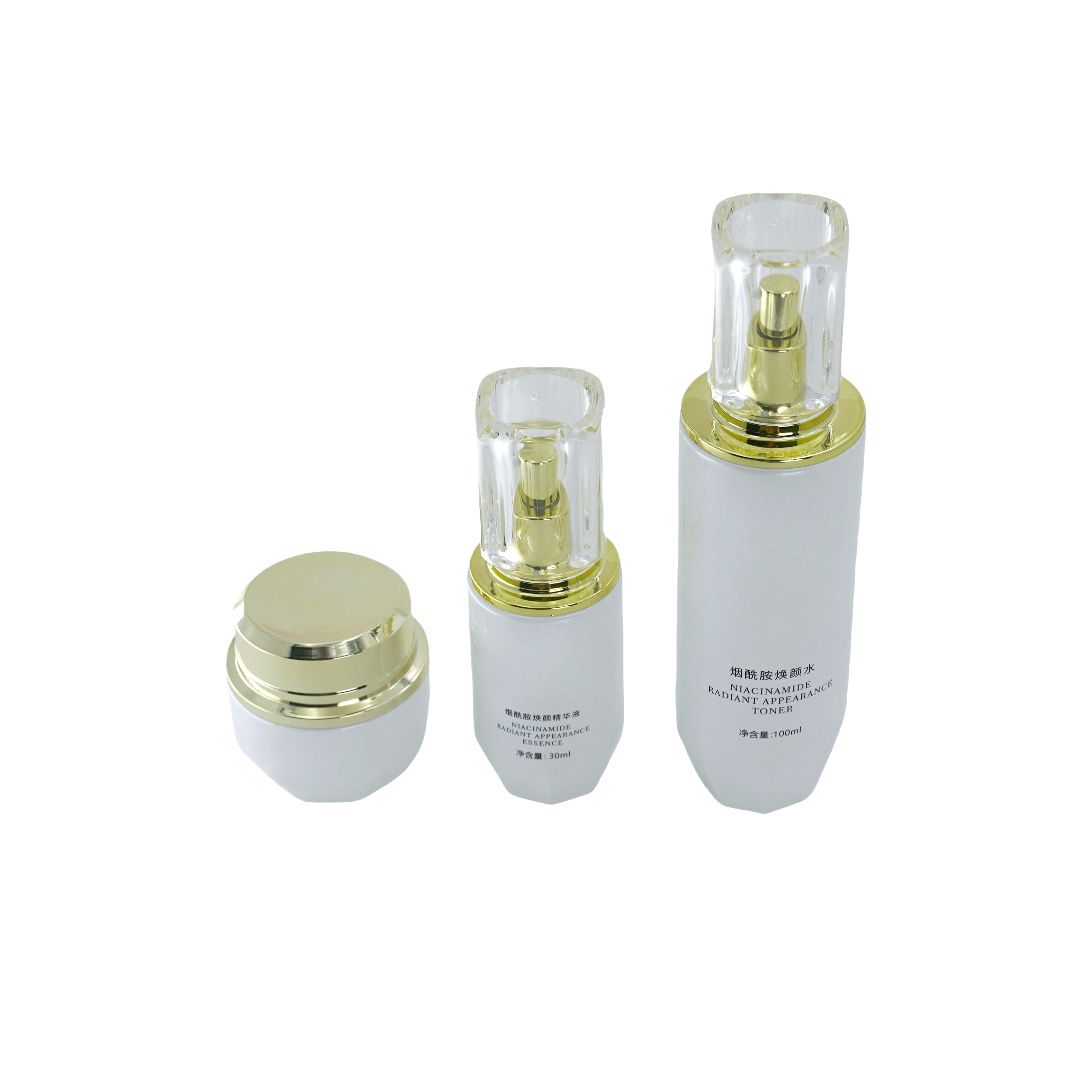 The Niacinamide Lightening Radiant Anti Wrinkle Firming set is including the Toner, hydrated serum, and skin lightener cream, they are water-rich with humectants like Glycerin, Butylene Glycol, Propanediol, and Niacinamide to provide the hydrating and radiant effect. It also works to regulate sebum (oil) production and reduce redness, inhibit the transfer of pigment (melanin) to skin cells, helping to fade dark spots and even out skin tone, it is gentle and suitable for all skin types, ensuring your skin feels fresh and breathable.